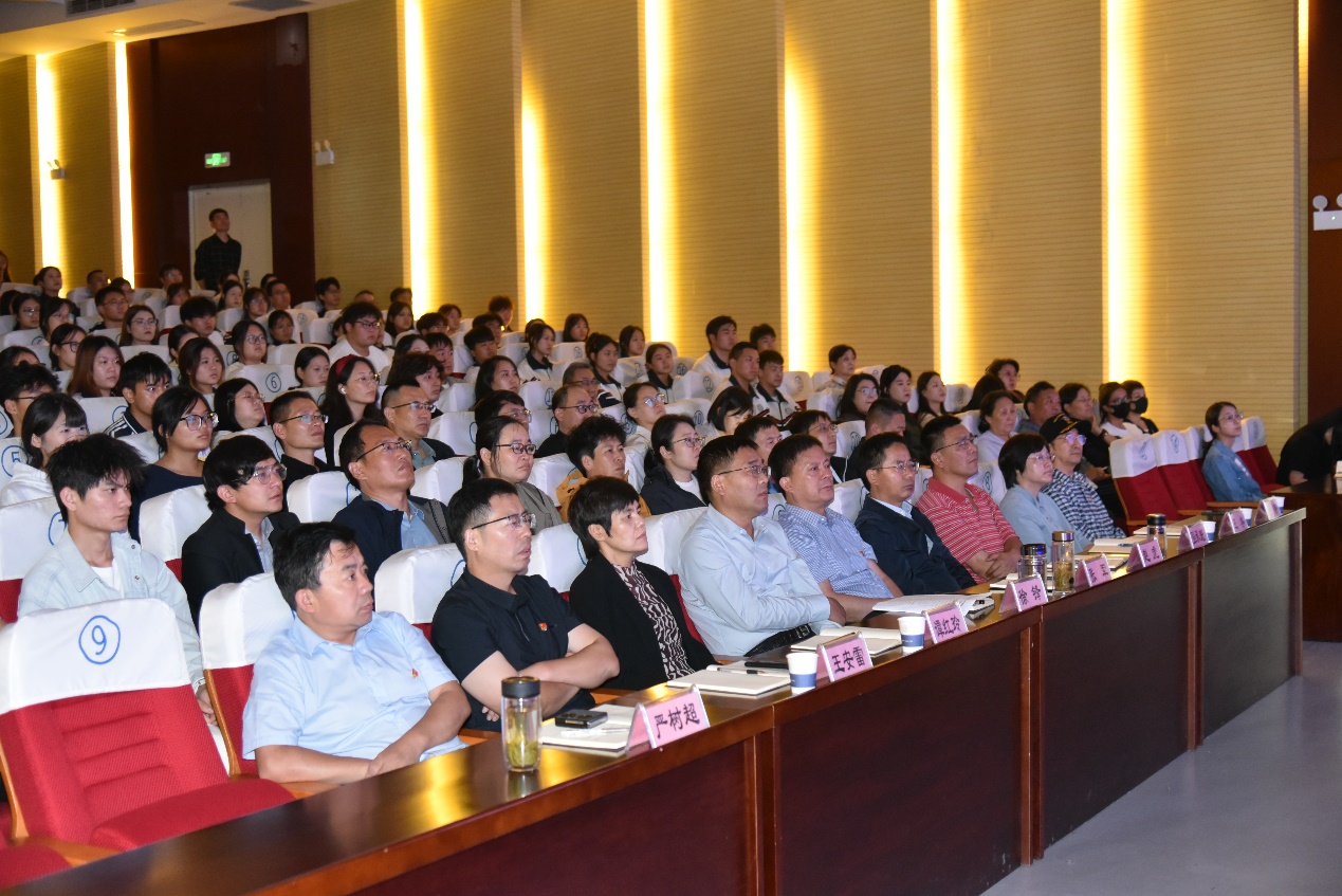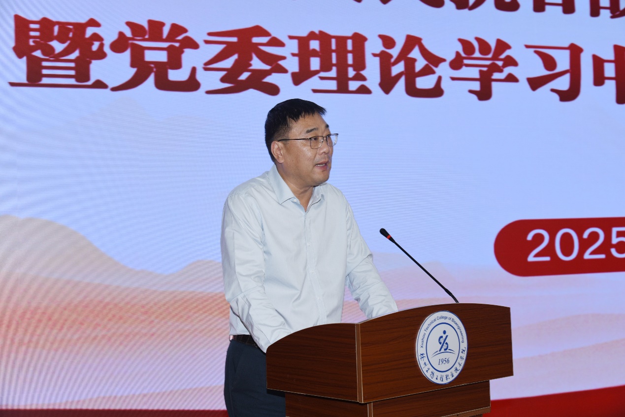 为深切缅怀革命先烈、传承红色基因,9月18日下午,我校举办纪念中国人民抗日战争胜利80周年专题党课暨党委理论学习中心组(扩大)学习会。国家一级编导、一级编剧徐铮教授受邀担任主讲嘉宾,校党委理论学习中心组成员、各党总支(直属党支部)委员、马克思主义学院教师、辅导员、学生代表等300余人参加。党委书记徐锋主持会议。